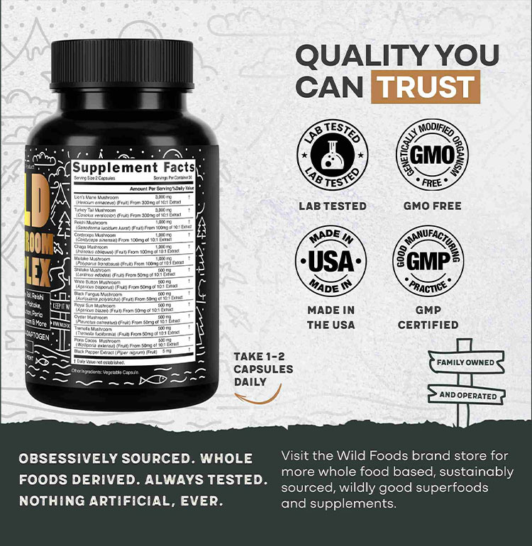 100% ORGANIC MUSHROOMS: The Wild Mushroom Supplement contains 13 types of powerful mushrooms, Ideal for men and women who demand the best for their minds and bodies.