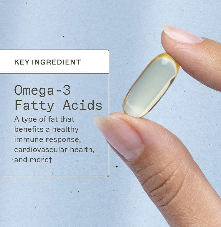 Omega-3 Support Softgels provide 1000mg of pharmaceutical-grade EPA and DHA in a softgel to support a healthy mood and optimal cognitive function. This powerful formula promotes a balanced immune response and delivers omega-3 fatty acids essential for cardiovascular health. An easy and effective way to nourish the body and mind every day.