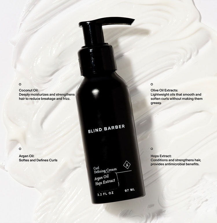 Blind Barber’s Curl Defining Cream defines and enhances natural curls while reducing frizz for smooth, voluminous hair.