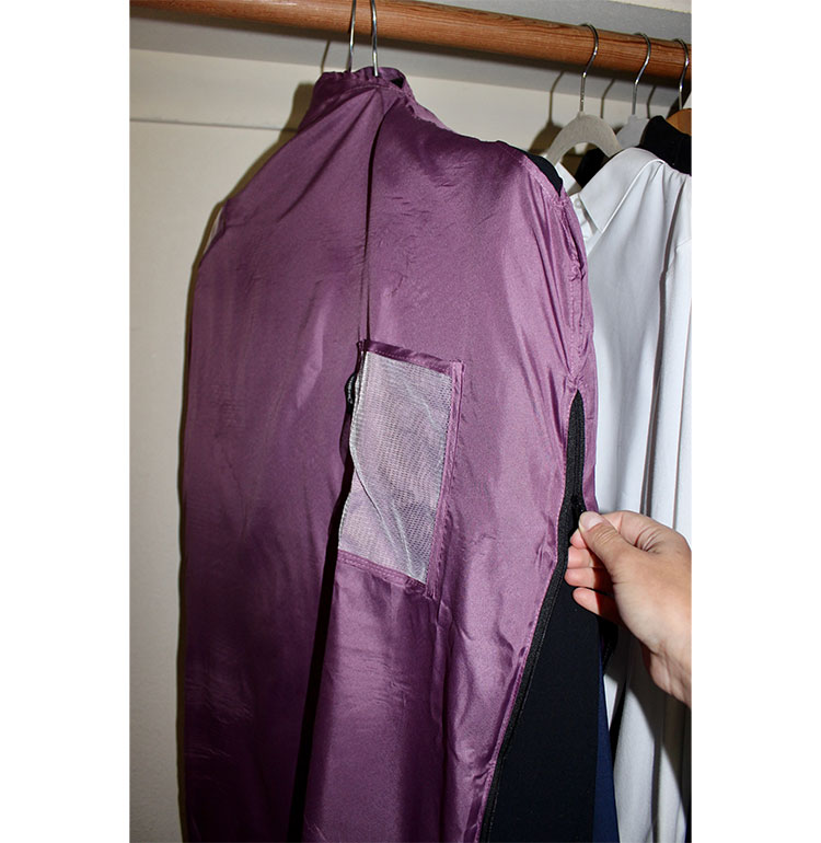 Say goodbye to single-use plastic film with this reusable garment bag that doubles as a clothing protector and laundry bag all-in-one! Equipped with a peep-hole to see inside, this lovely bag features an easy-access zipper and pocket for ID tags and invoices.