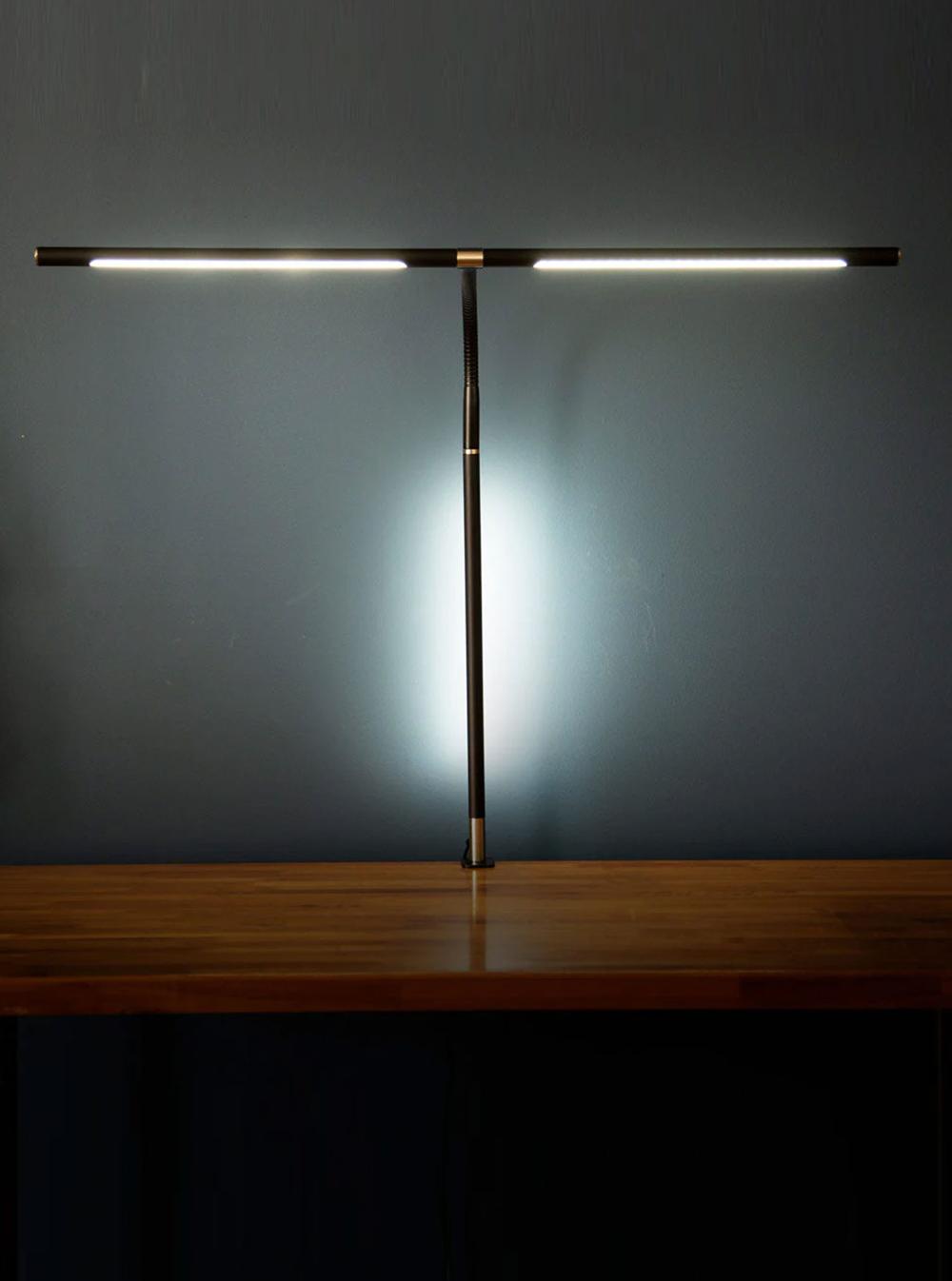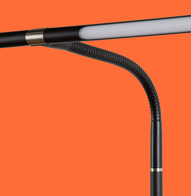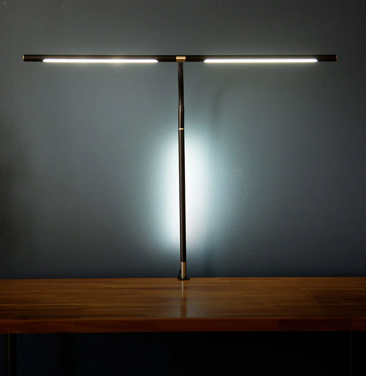 The type of light we work under affects both our mood and productivity. Fluidstance’s Illum Desk Light enables complete flexibility in brightness and hue, allowing you to match your ambience to your mood. Illum is a versatile triple-light desk lamp system featuring an adjustable gooseneck and 360 degree rotation on each of the three LED fixtures. Simply clamp the Illum light onto your desk and click the remote to adjust the hue and brightness to your liking.