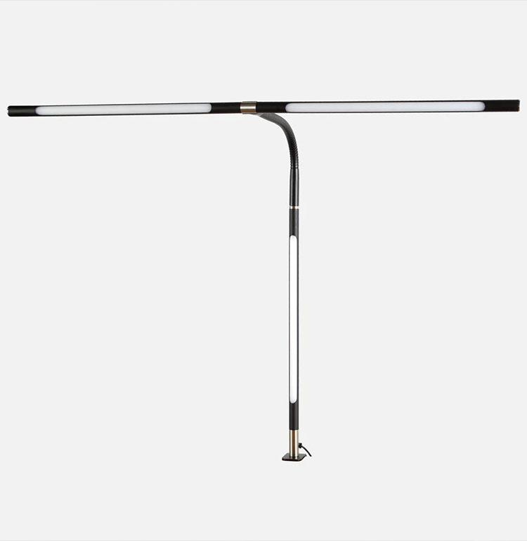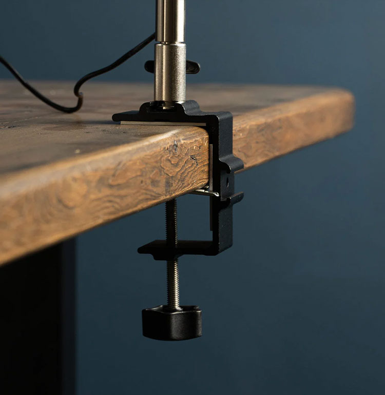 Ambient Lighting: Rotatable vertical light for customizable ambient illumination; fits desks up to 2.625" thick with an adjustable clamp.