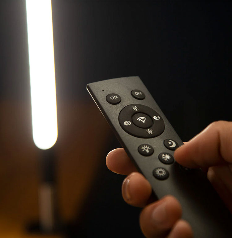 Task Light: 162 flicker-free LEDs with adjustable brightness (5-100%) and preset settings (2700K-6000K) on a wireless remote.