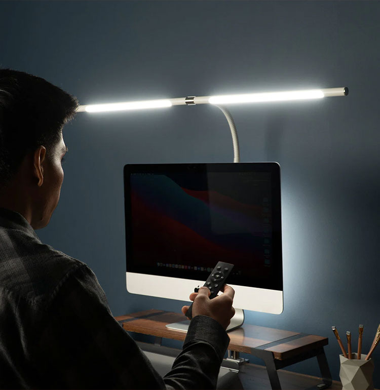 Webcam Light: Dual independent horizontal lights rotate 360 degrees for optimal webcam lighting or task lighting. (25"-34" off the desk)