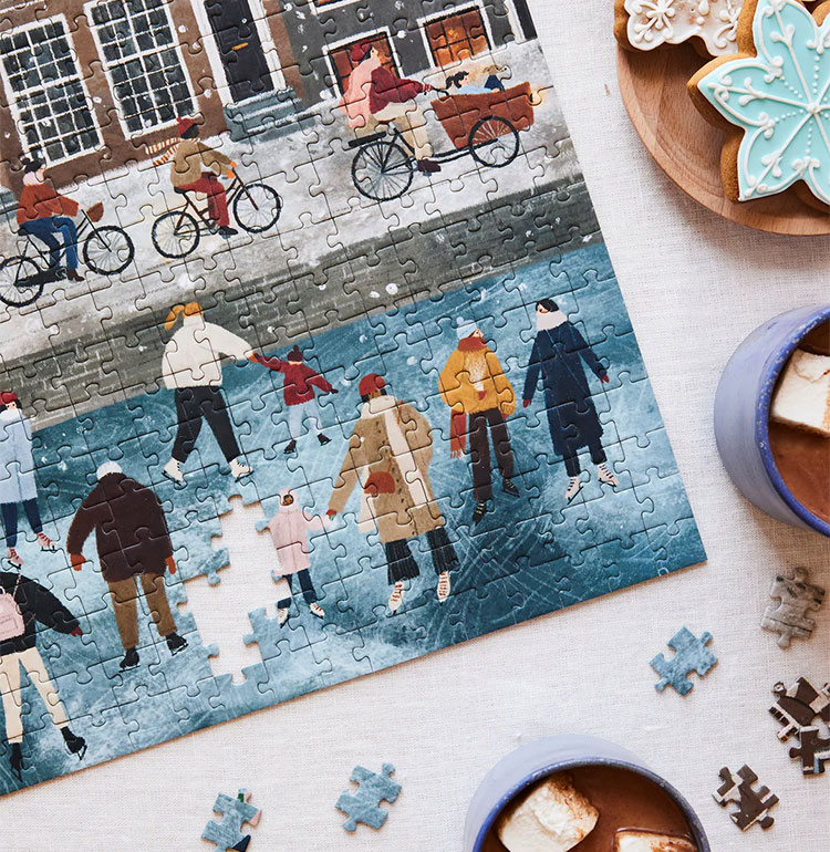The Magical Holiday Bundle features one puzzle in each of Ordinary Habit’s signature sizes—100, 500, and 1000 pieces—so you can choose your perfect holiday project. From the quick charm of Christmas Eve to the satisfying challenge of Snow Day in Amsterdam and the immersive beauty of Magic of the Season, this collection brings the warmth and wonder of the holidays to life. Whether you're seeking a cozy evening activity or a festive tradition to savor over several sessions, you'll find the right fit here.