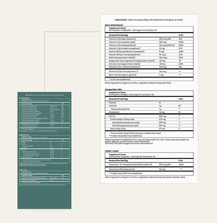 Men’s Multivitamin: Developed by a team of leading doctors and reproductive endocrinologists, containing high-quality, bioavailable ingredients at research-backed doses. Specifically formulated to support men’s fertility and beyond throughout fatherhood. Contains the activated format of folate (L-5 Methylfolate), vitamins C and E, and selenium to support fertility, and the chelated format of key minerals for optimal absorption.