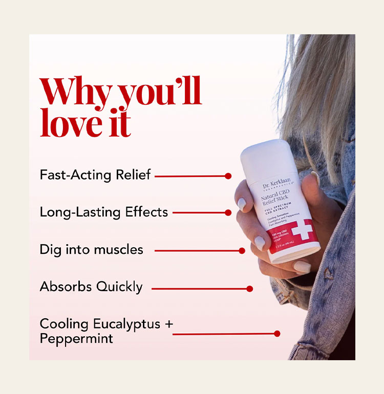 Designed for natural pain relief, Dr. Kerklaan’s CBD Relief Stick combines full-spectrum hemp extract with cooling botanicals to deliver fast, targeted comfort—without the mess. The smooth-glide formula absorbs quickly, making it an effortless way to ease muscle tension, joint discomfort, and everyday aches.