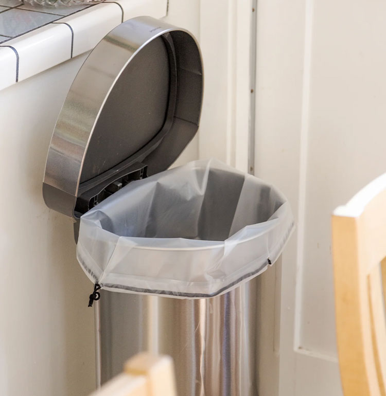 This new and improved liner is made from our unique 100% PEVA material, which is BPA-free and non-chlorinated. These tough liners are double seam-sealed with extra thick side walls that repel both odor and icky stuff. Equipped with a handy drawstring to hold the bags in place.