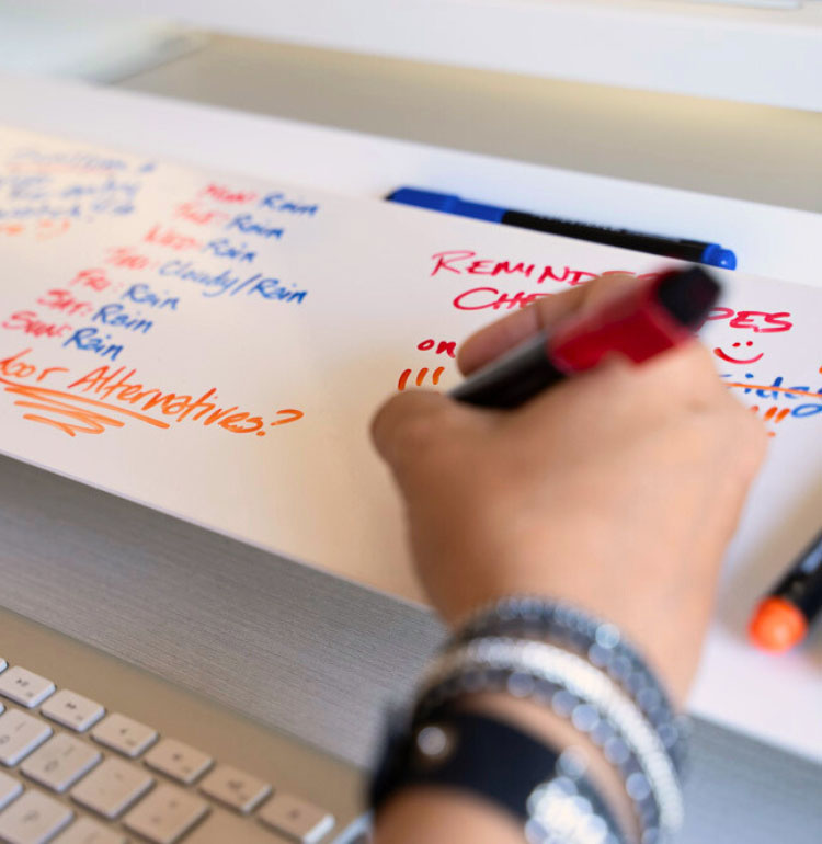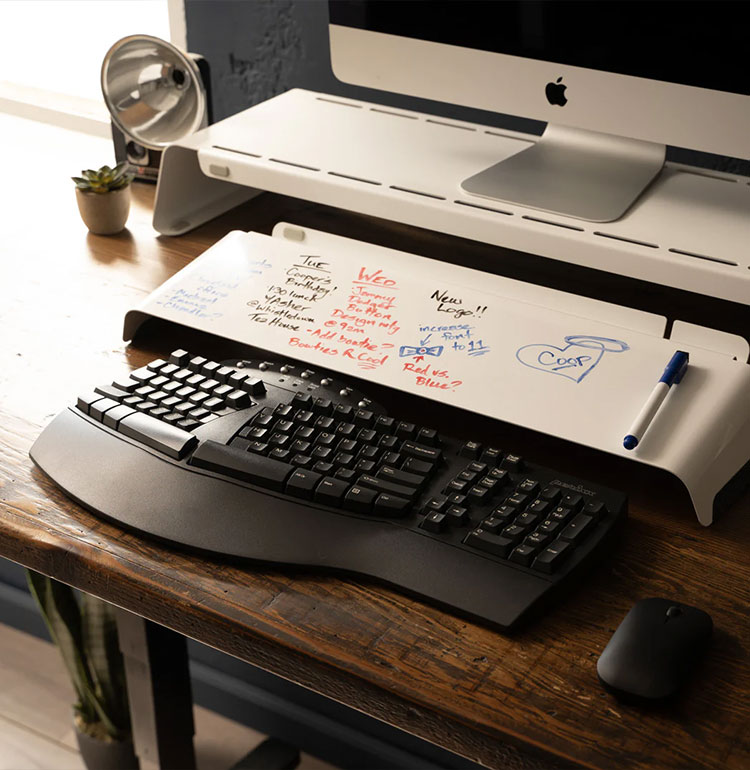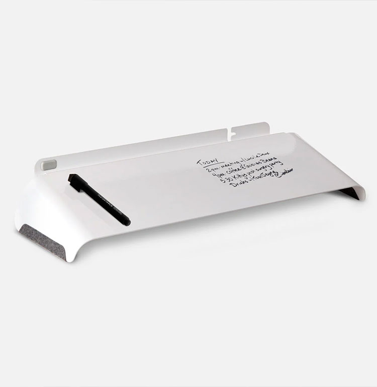 • Slope features a channel to hold your dry-erase marker and other tools, with a dedicated space for your charging cable.