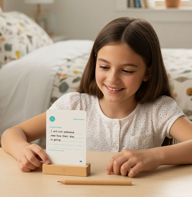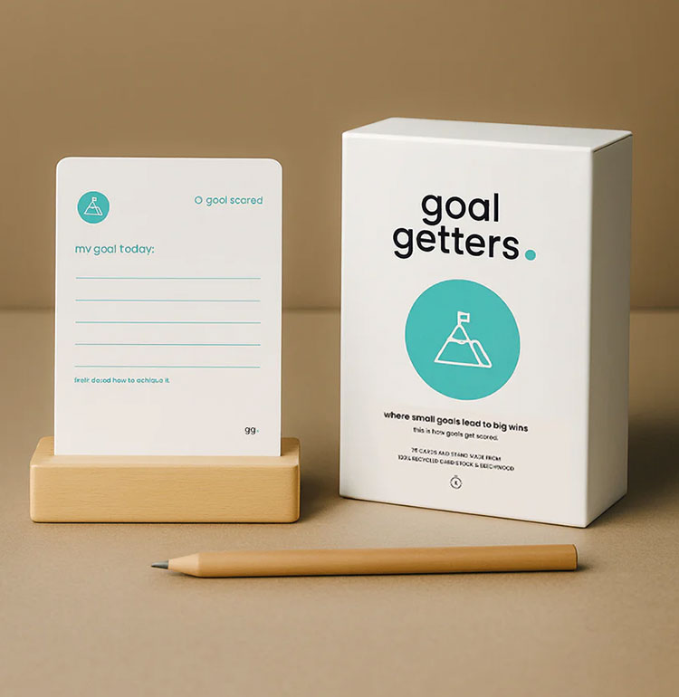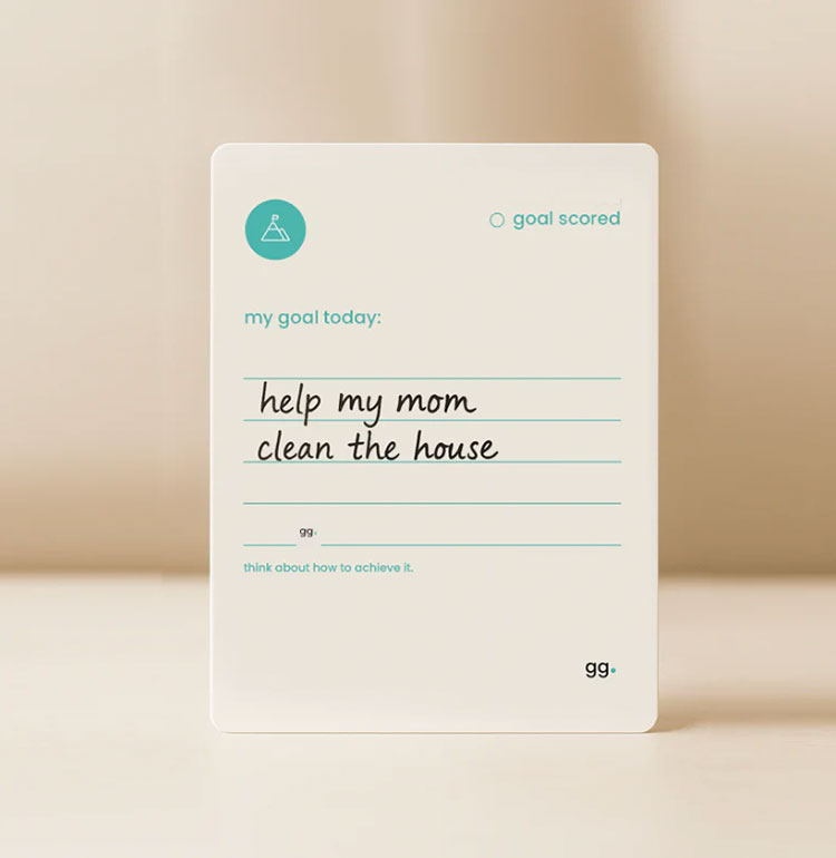 Goal Getters is a daily goal-setting deck that helps kids (and their grown-ups) turn tiny intentions into real wins. Each card invites them to write one thing they want to do today, then gives their brain a nudge to actually follow through. Big dreams start small, one little goal at a time.