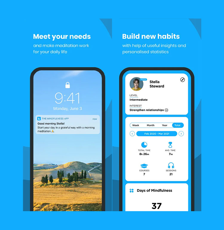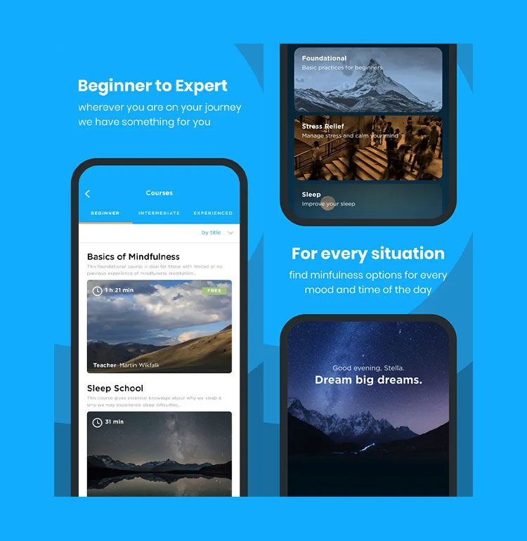 The Mindfulness App is a meditation app with over 350 guided meditations and courses from experts around the world.