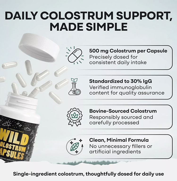 Beyond immune support, colostrum helps maintain gut lining integrity and supports normal digestive function. It contains naturally occurring compounds that may assist in supporting gut microbiota and nourishing intestinal health.