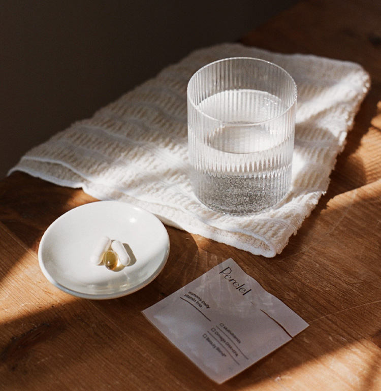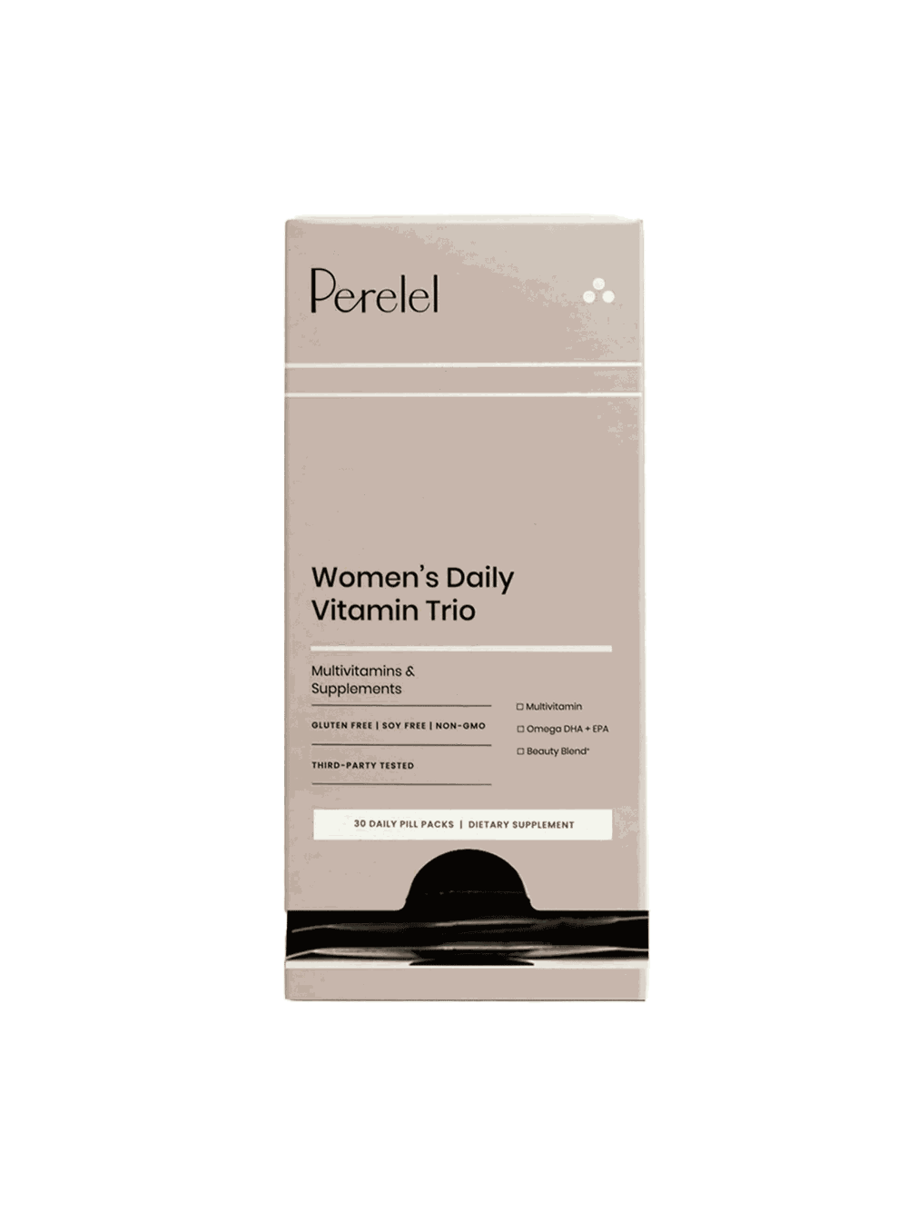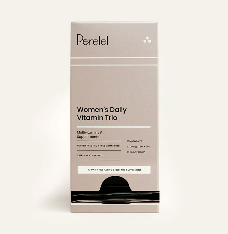 Each daily packet includes a multivitamin, an omega, and a Beauty Blend capsule packed with collagen and biotin.